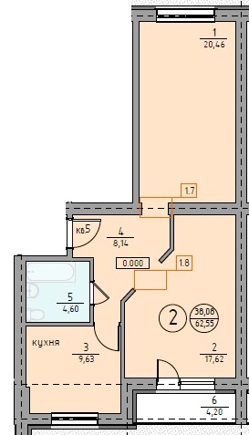 - Общая площадь: 62.55 м²