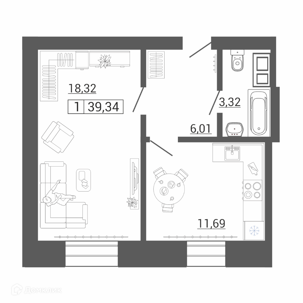- ✅ Кухня: 11.69 м² — идеальна для семейных ужинов.