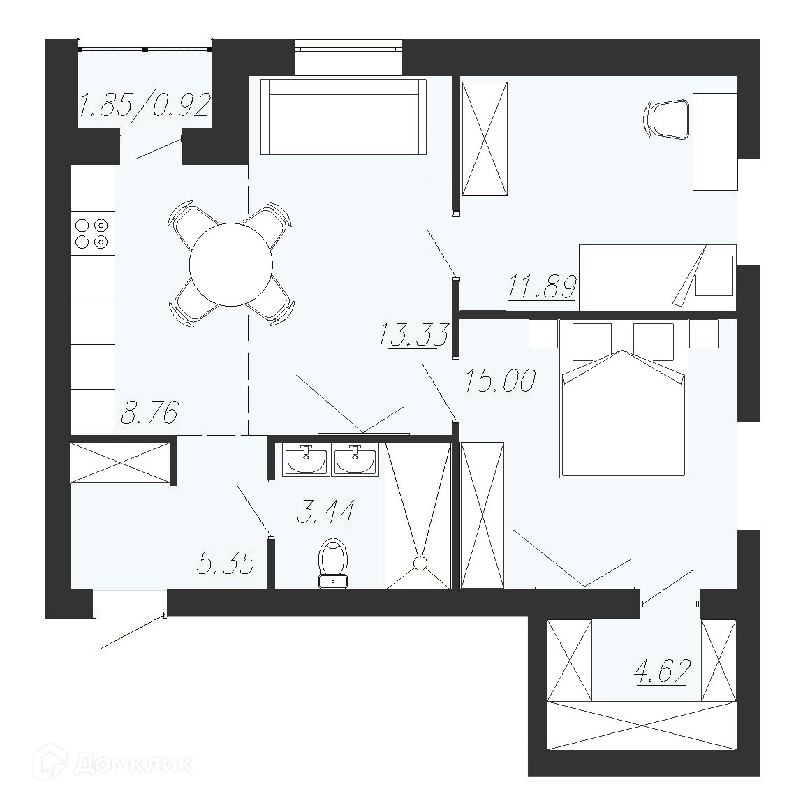 - Общая площадь: 63.3 м²