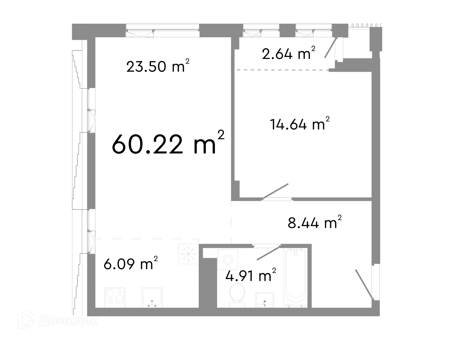 • Площадь - 60.22 м²