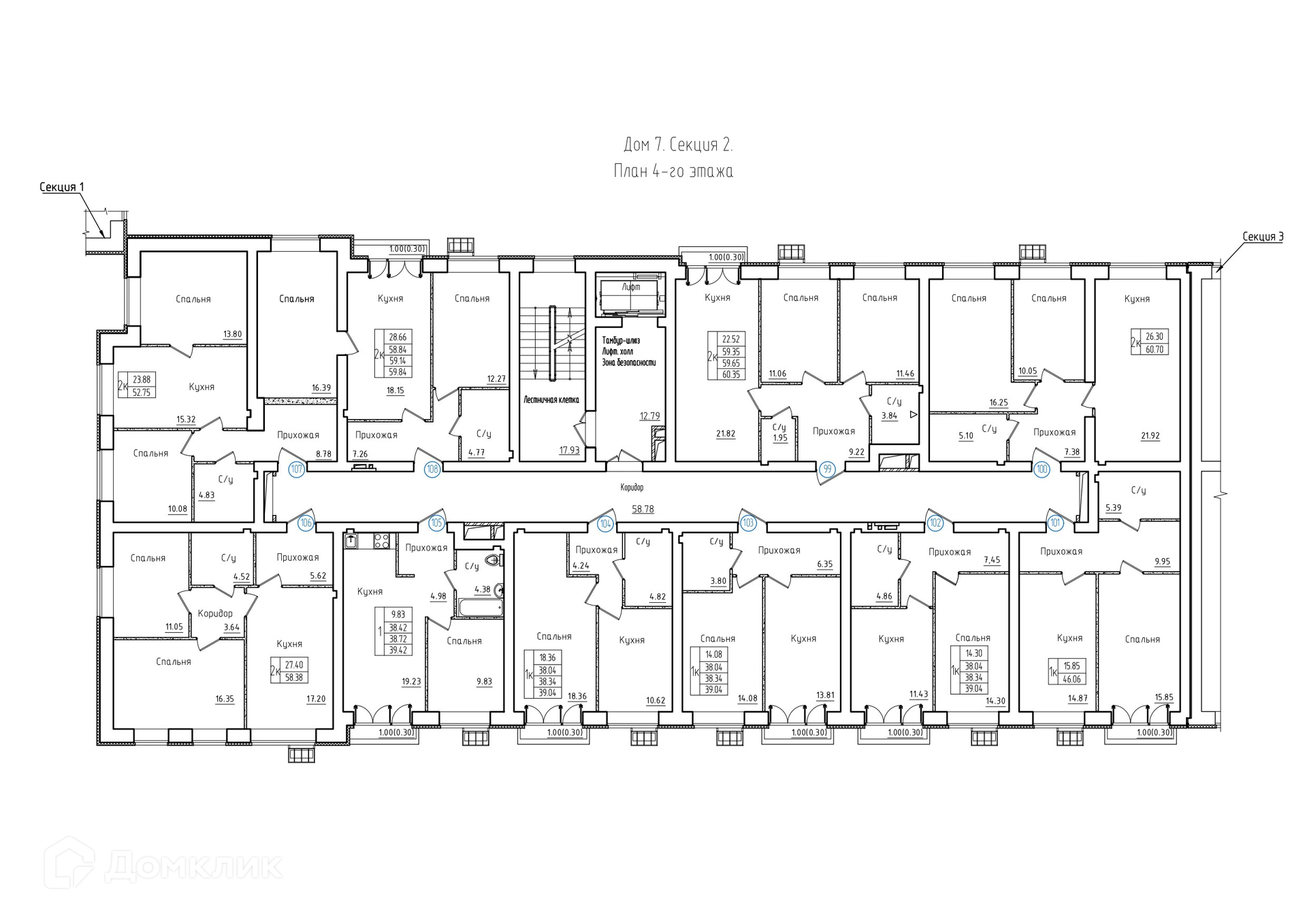 Площади квартир