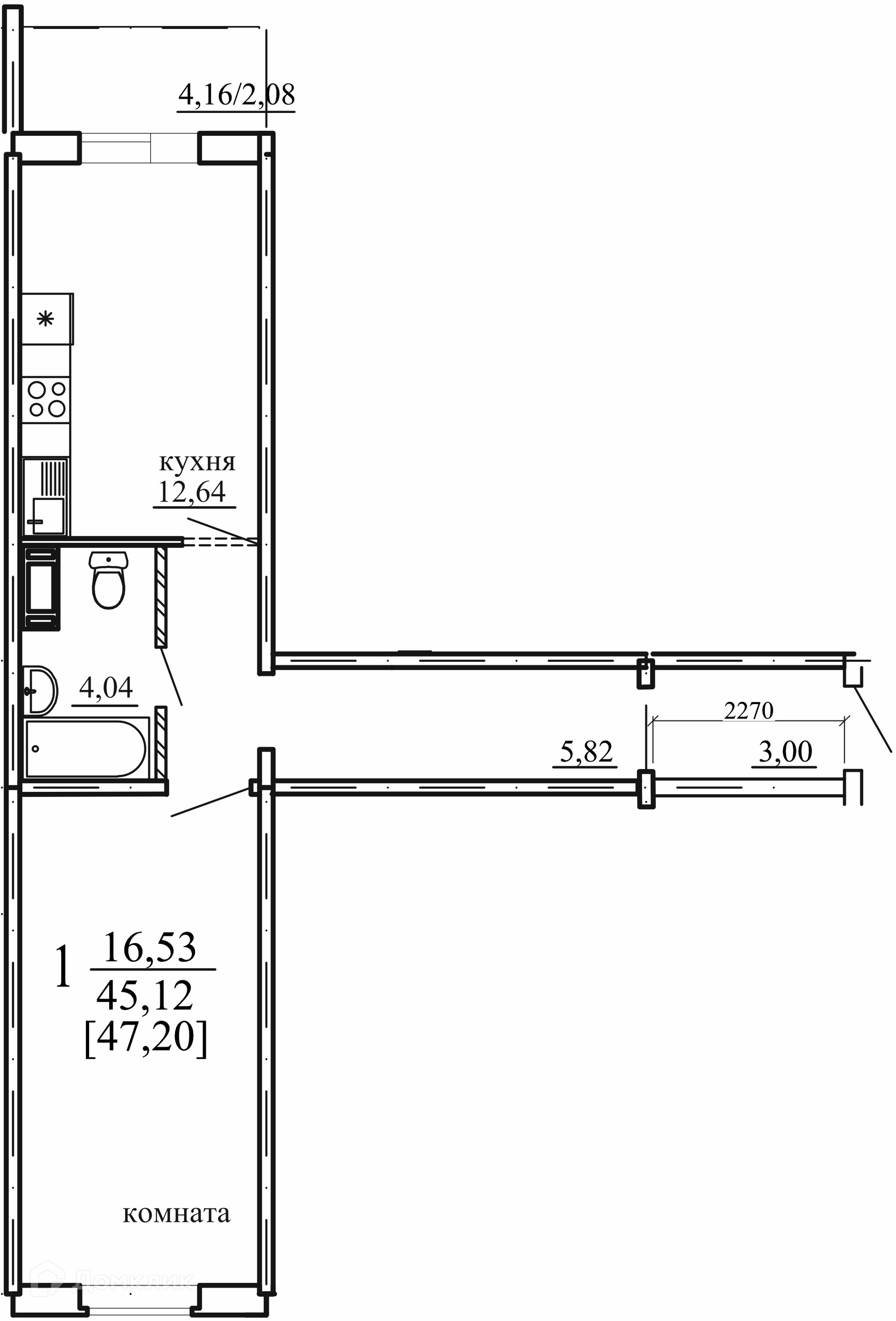 • Площадь - 45.12 м²