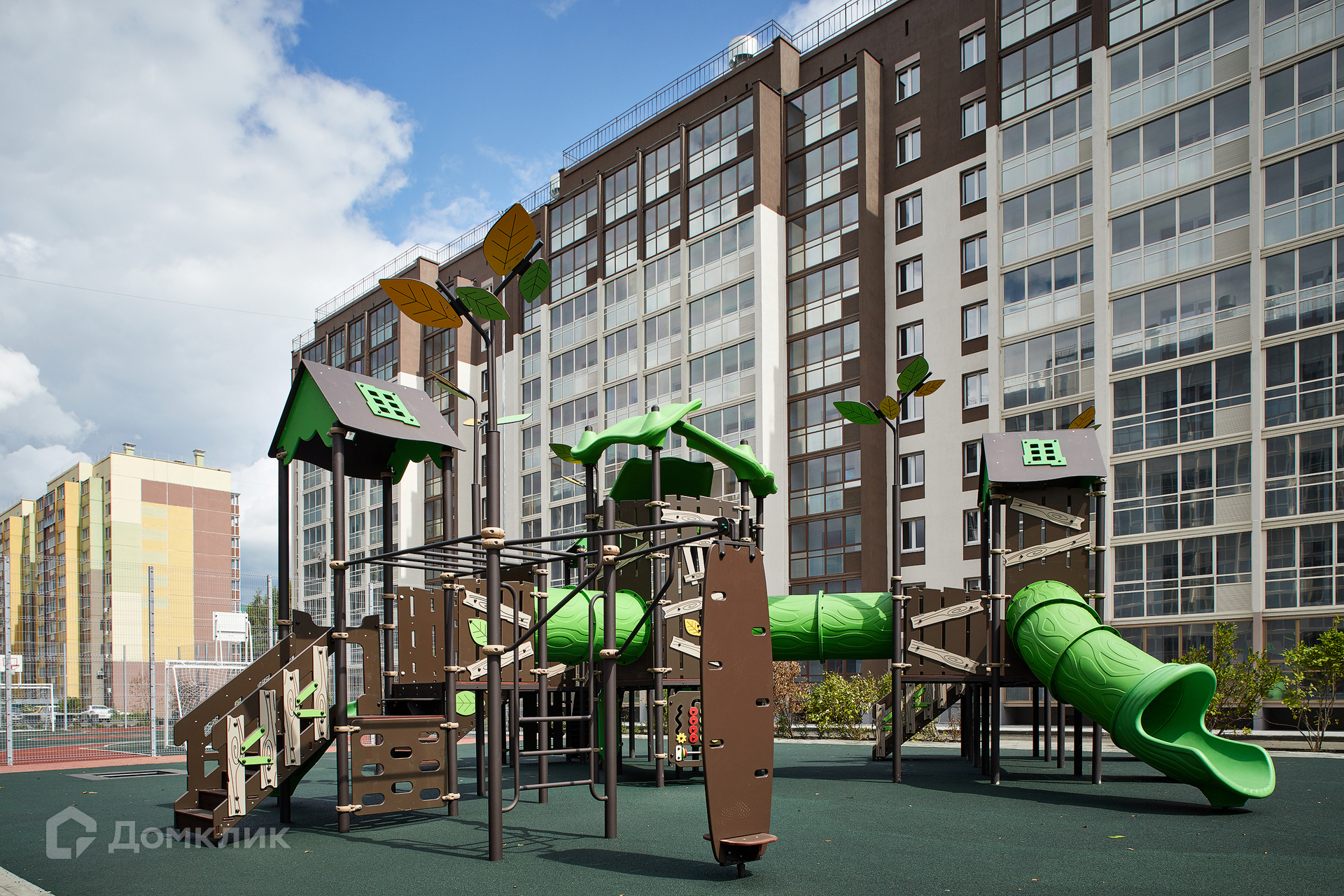 Благоустройство прилегающей территории включает в себя организацию детских игровых и спортивных площадок, гостевой автостоянки, а также озеленение. В шаговой доступности детские сады, школы, продуктовые магазины, остановки общественного транспорта.