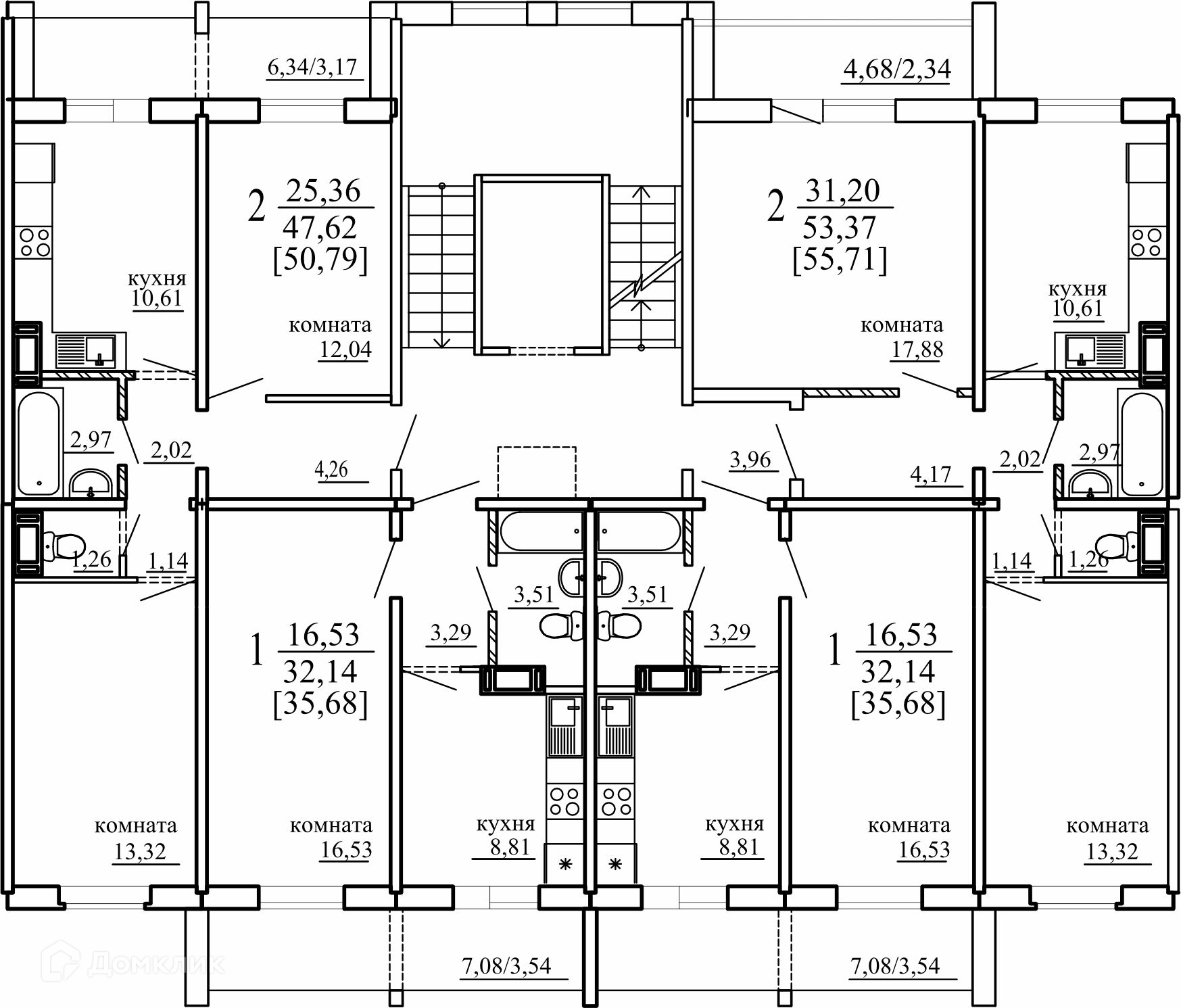 Площади квартир