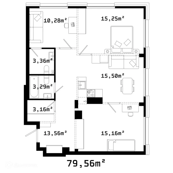 3 комн. квартира в Челябинске в ипотеку от 123 749 руб/месяц