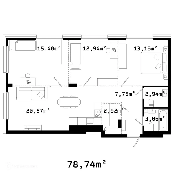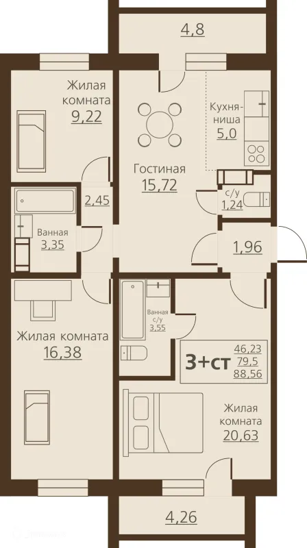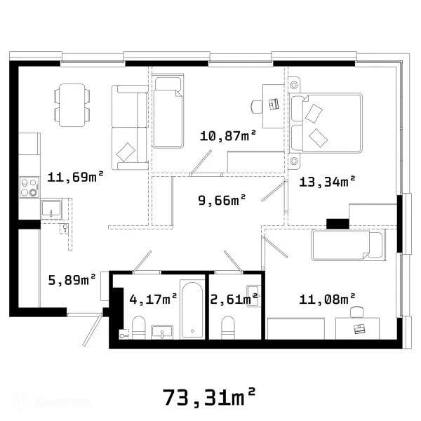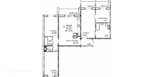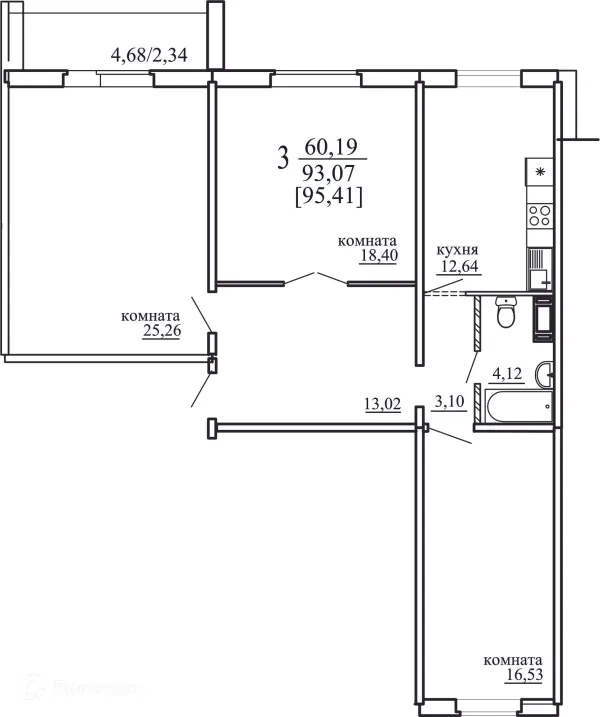 3 комн. квартира в Челябинске в ипотеку от 66 263 руб/месяц