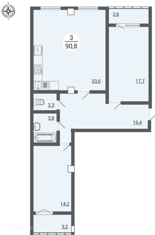 3 комн. квартира в Челябинске в ипотеку от 117 723 руб/месяц
