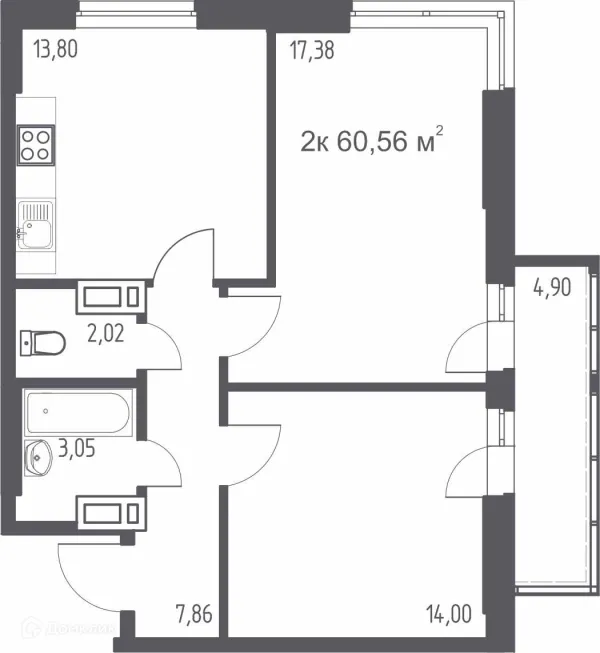 2 комн. квартира в Челябинске в ипотеку от 35 256 руб/месяц