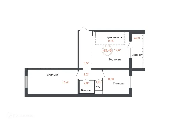 2 комн. квартира в Челябинске в ипотеку от 55 558 руб/месяц