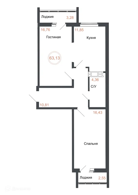 2 комн. квартира в Челябинске в ипотеку от 51 384 руб/месяц