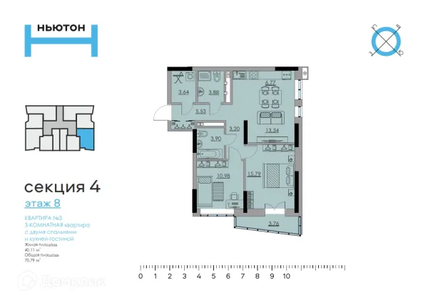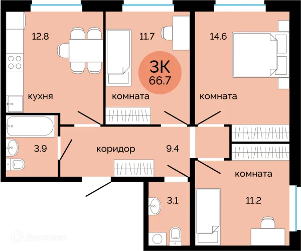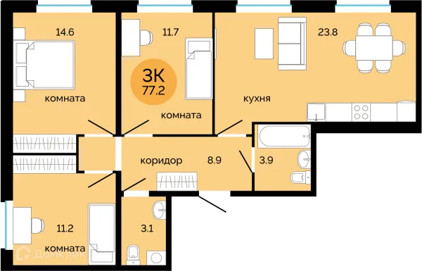 3 комн. квартира в Перьми в ипотеку от 66 796 руб/месяц