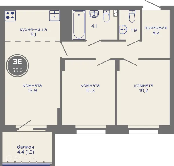 3 комн. квартира в Перьми в ипотеку от 84 410 руб/месяц