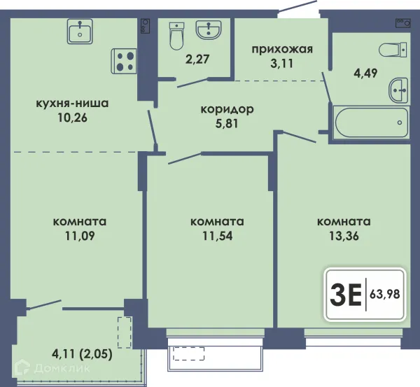 3 комн. квартира в Перьми в ипотеку от 95 098 руб/месяц