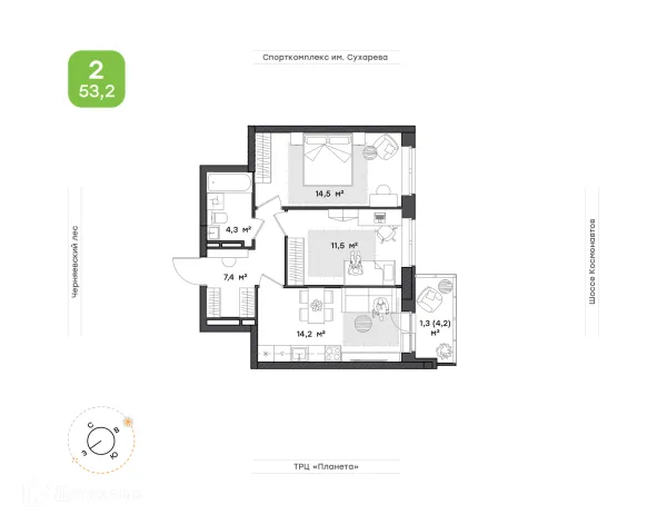 2 комн. квартира в Перьми в ипотеку от 67 527 руб/месяц