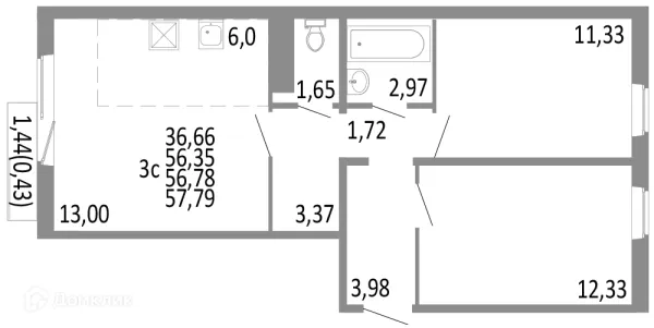 3 комн. квартира в Челябинске в ипотеку от 43 042 руб/месяц