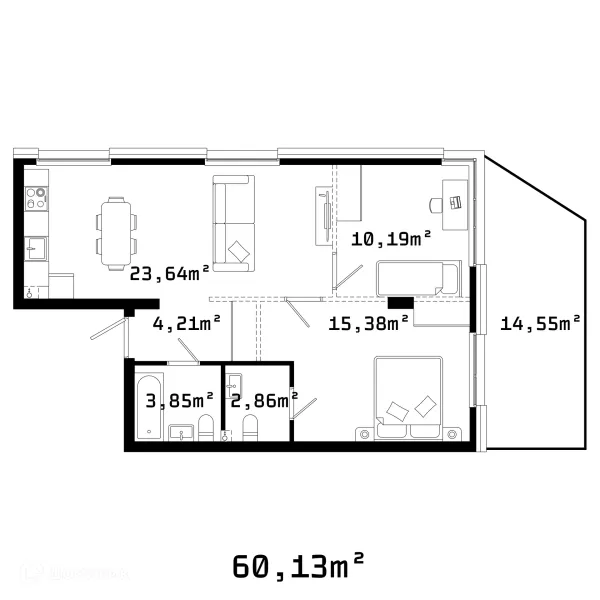 2 комн. квартира в Челябинске в ипотеку от 103 919 руб/месяц
