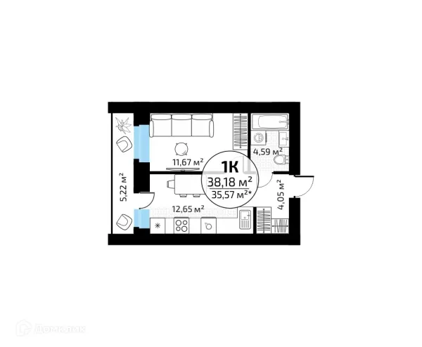 1 комн. квартира в Самаре в ипотеку от 35 348 руб/месяц