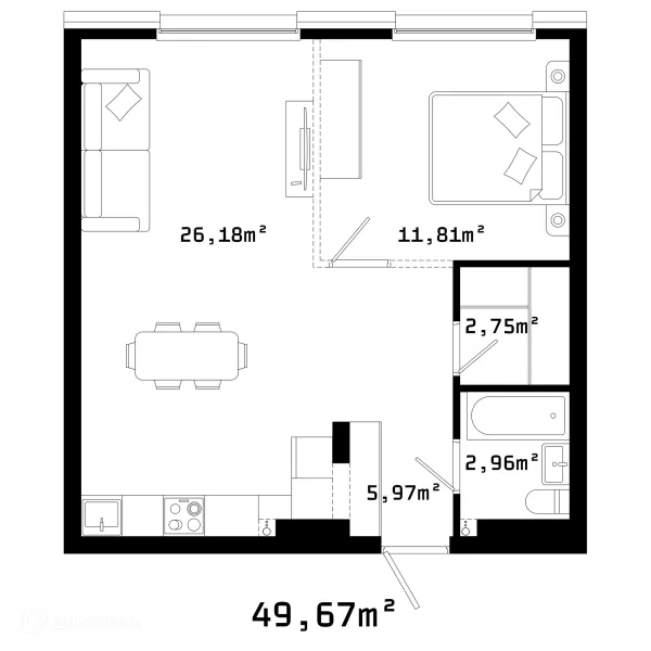 1 комн. квартира в Челябинске в ипотеку от 54 875 руб/месяц