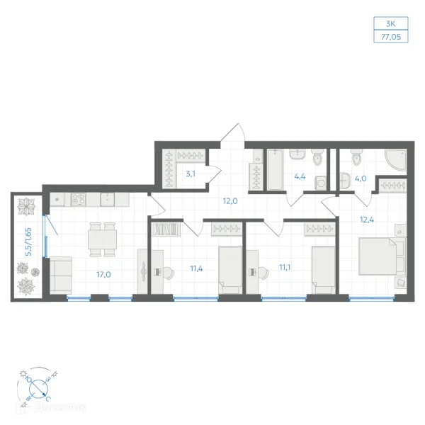 3 комн. квартира в Челябинске в ипотеку от 73 331 руб/месяц