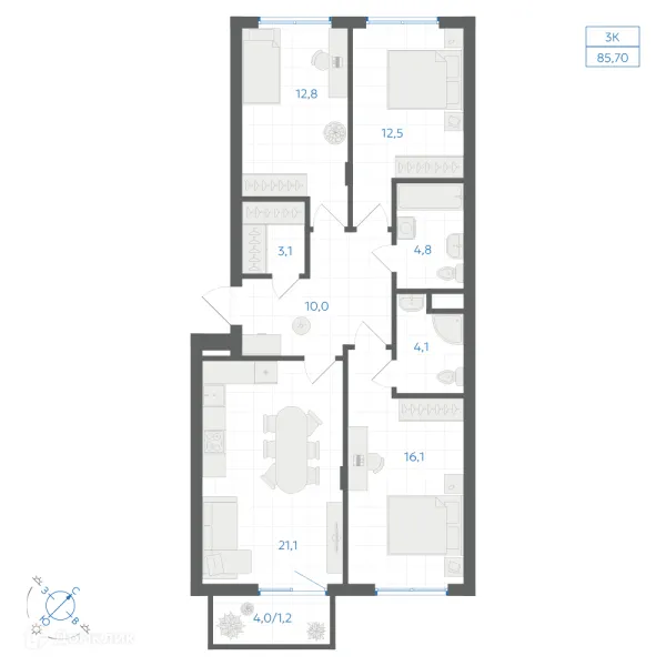 3 комн. квартира в Челябинске в ипотеку от 69 472 руб/месяц