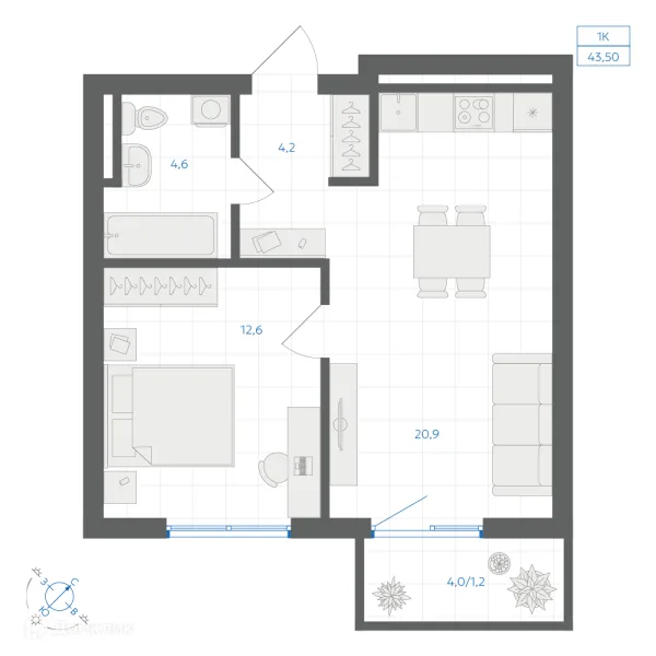 1 комн. квартира в Челябинске в ипотеку от 43 713 руб/месяц