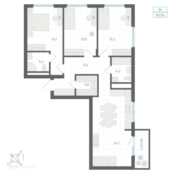 3 комн. квартира в Челябинске в ипотеку от 90 574 руб/месяц