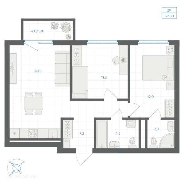 2 комн. квартира в Челябинске в ипотеку от 72 308 руб/месяц