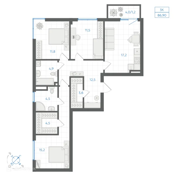 3 комн. квартира в Челябинске в ипотеку от 103 262 руб/месяц