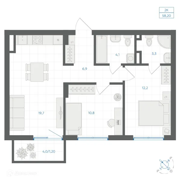 2 комн. квартира в Челябинске в ипотеку от 57 981 руб/месяц