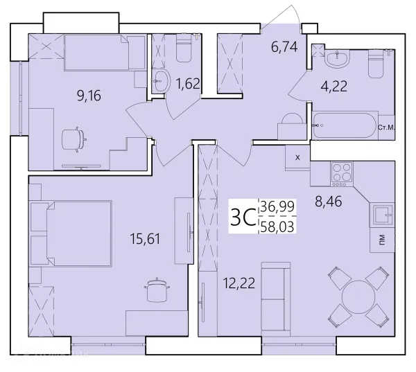 3 комн. квартира в Уфе в ипотеку от 91 322 руб/месяц