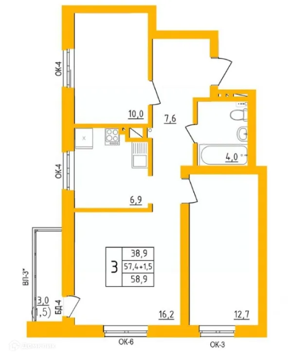 3 комн. квартира в Уфе в ипотеку от 53 895 руб/месяц