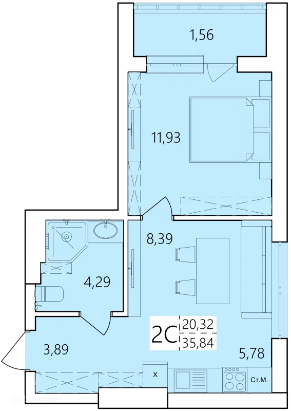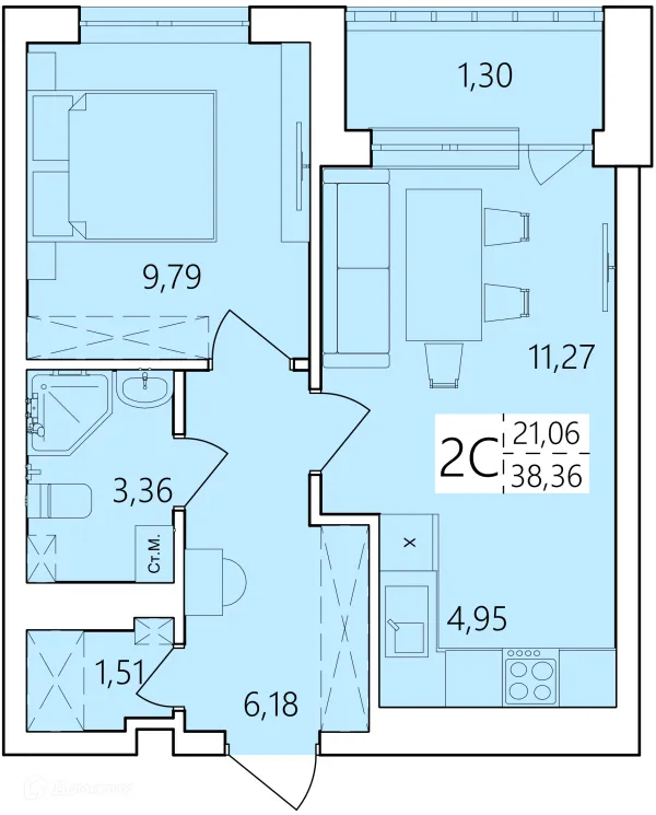 2 комн. квартира в Уфе в ипотеку от 34 558 руб/месяц