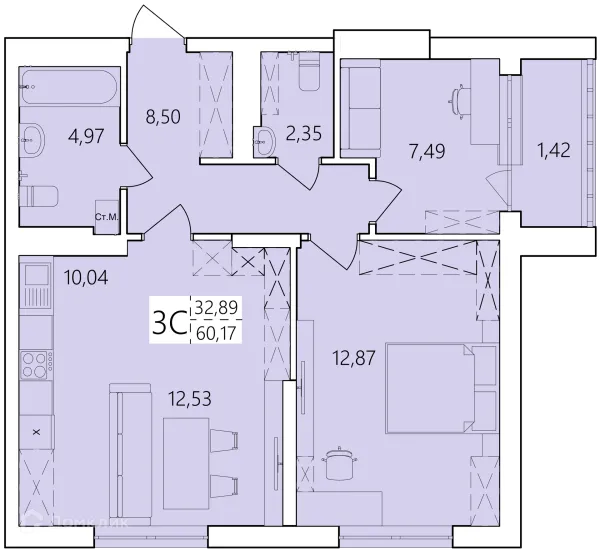 3 комн. квартира в Уфе в ипотеку от 48 961 руб/месяц