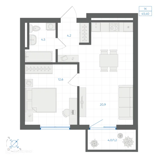 1 комн. квартира в Челябинске в ипотеку от 57 248 руб/месяц