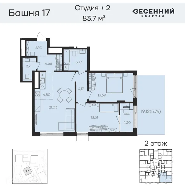 3 комн. квартира в Челябинске в ипотеку от 99 413 руб/месяц
