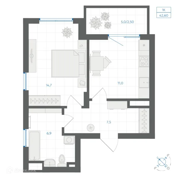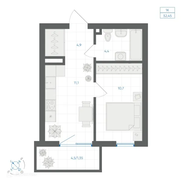 1 комн. квартира в Челябинске в ипотеку от 45 078 руб/месяц