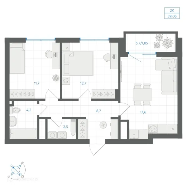 2 комн. квартира в Челябинске в ипотеку от 81 011 руб/месяц