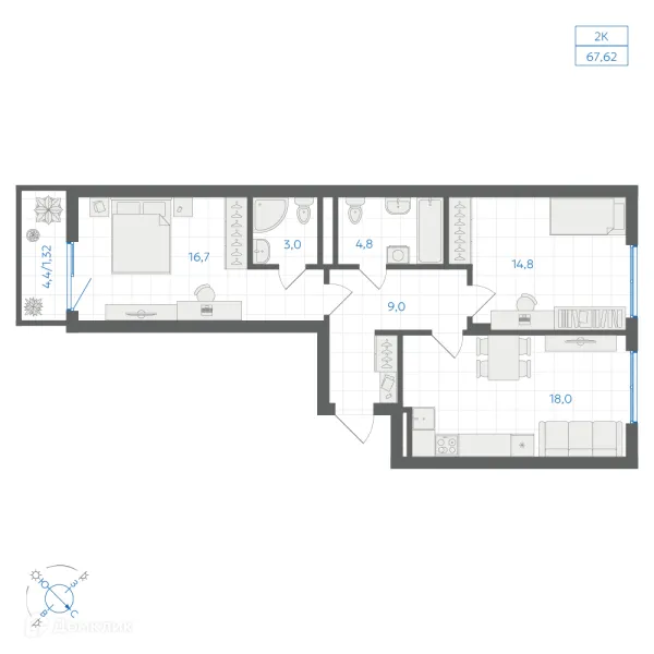 2 комн. квартира в Челябинске в ипотеку от 72 010 руб/месяц