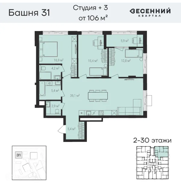 4 комн. квартира в Челябинске в ипотеку от 122 796 руб/месяц
