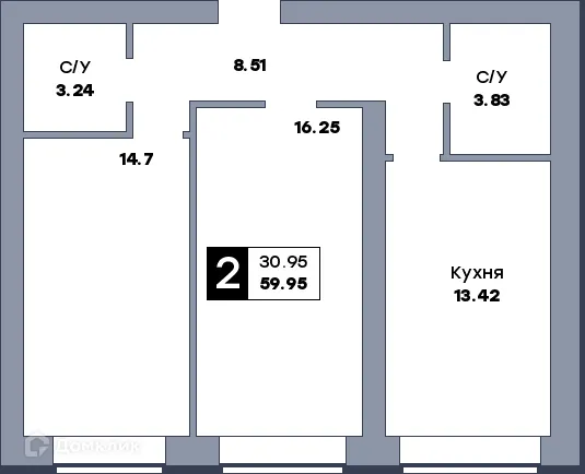 2 комн. квартира в Самаре в ипотеку от 47 607 руб/месяц