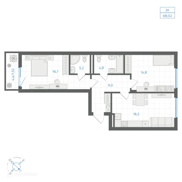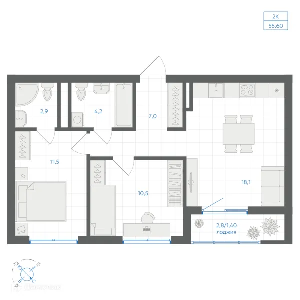 2 комн. квартира в Челябинске в ипотеку от 66 836 руб/месяц