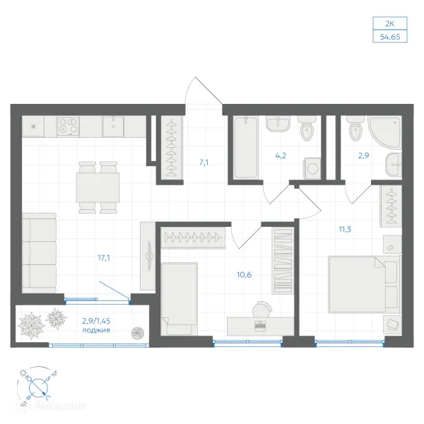 2 комн. квартира в Челябинске в ипотеку от 69 273 руб/месяц