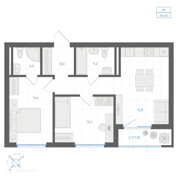 2 комн. квартира в Челябинске в ипотеку от 80 795 руб/месяц