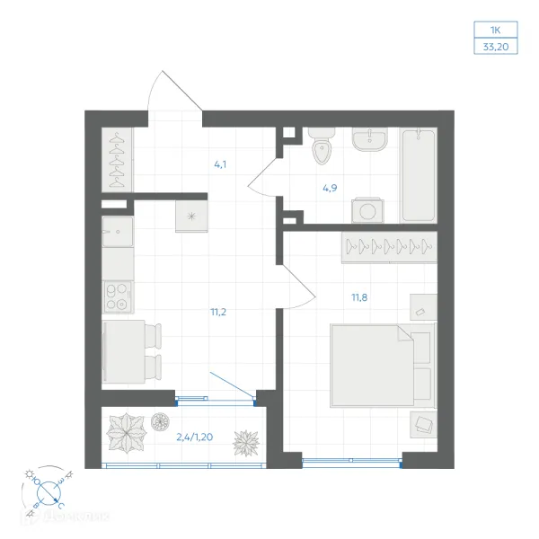 1 комн. квартира в Челябинске в ипотеку от 41 524 руб/месяц