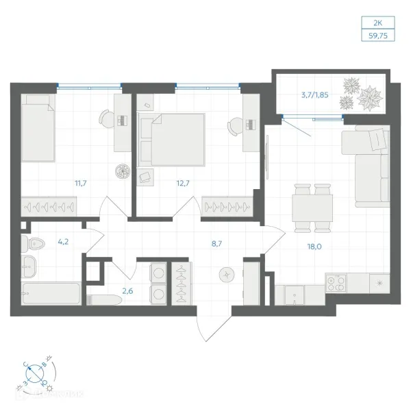 2 комн. квартира в Челябинске в ипотеку от 69 633 руб/месяц