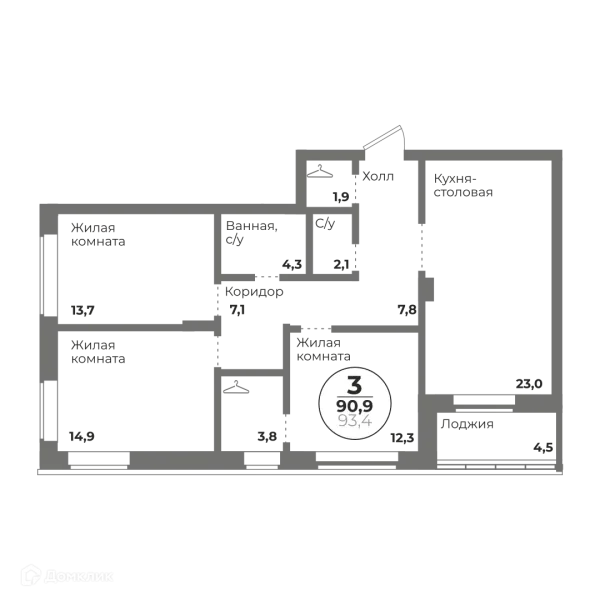 3 комн. квартира в Челябинске в ипотеку от 94 649 руб/месяц