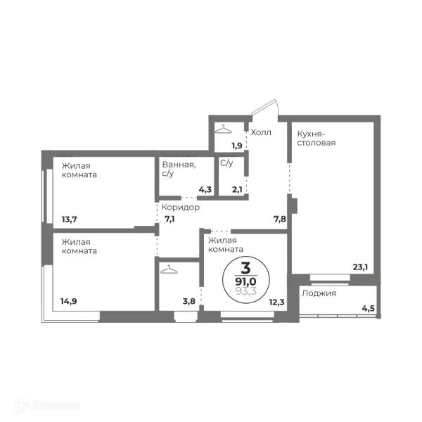 3 комн. квартира в Челябинске в ипотеку от 91 983 руб/месяц